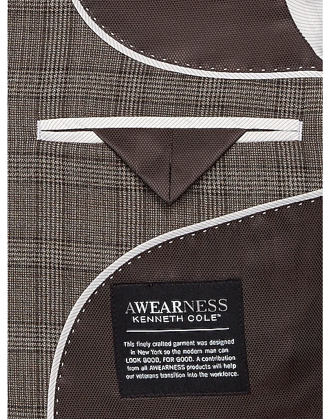 - 66% wool — 30% polyester — 4% spandex|Two button|Notch lapel|Side vents|Modern Fit|Awearness Kenneth Cole|