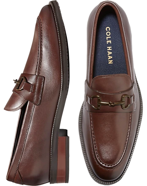 - Leather upper|Almond toe|Slip on|Bit detail on vamp|EVA midsole for comfort and support|Rubber outsole with leather waist|Cole Haan is a global performance lifestyle brand with a 90 year heritage. Cole Haan infuses its products with time honored craftsmanship and modern innovation. Customers can wear their footwear from work to workout to weekend.|