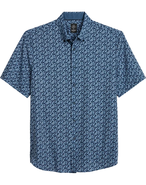 Michael Strahan Modern Fit 4-Way Stretch Short Sleeve Sport Shirt, Navy & Blue Floral