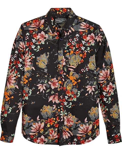 Bring a fashionable point of view to your wardrobe with this sport shirt from Paisley & Gray. Known for their brilliant hues and bold patterns, this shirt offers the best of both with its vibrant paint splatter floral print.
