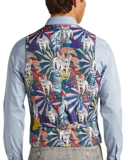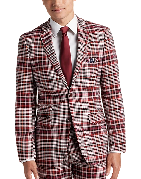 - 64% polyester 34% rayon 2% spandex|Two button|Notch lapel|Side vents|Coordinating pieces sold separately|Slim Fit|Paisley & Gray|