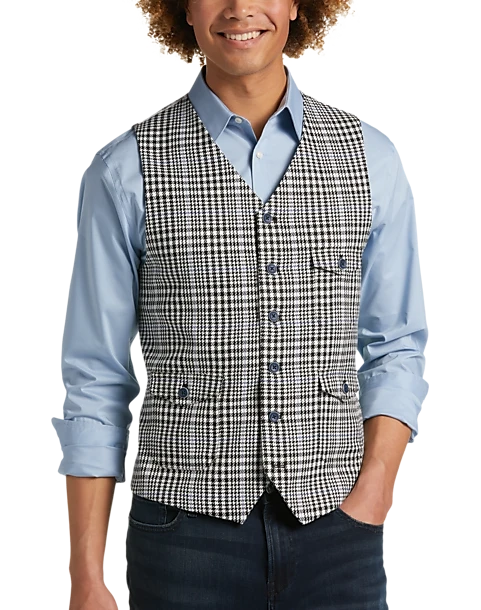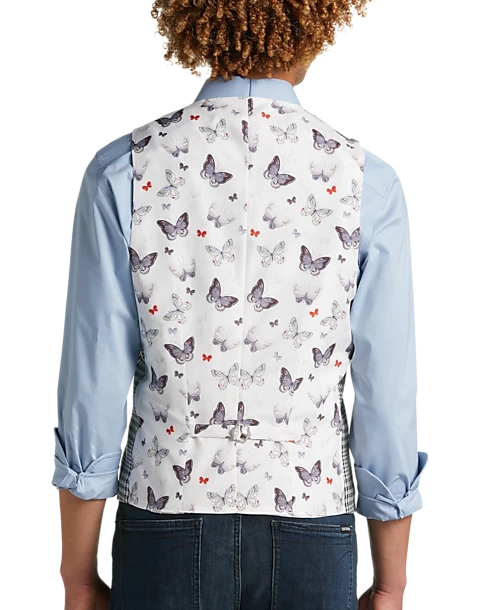 Add instant panache to your dressed up or dress-casual ensemble with this fine vest from Paisley & Gray. Woven into a classic glen plaid and lined with a butterfly pattern, it has a Slim Fit for a polished look.